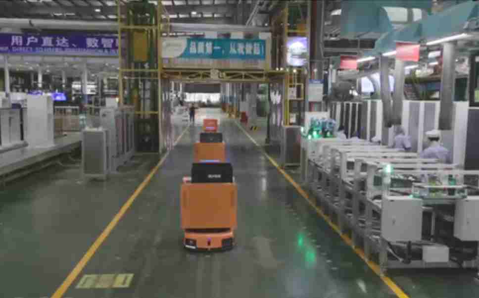 为车载冰箱物流配送打造的智能解决方案,,包含产中物流通过潜伏举升AMR搬运至线边,,,产后成品物流智能仓储,,,流程包含产中物流智能齐套入库,,线边安灯叫料AMR智能配送至线边,,,成品入库、、出库,,,,通过无人堆高车机器人,,,,智能仓储管理替代人工作业管理,,实现更高存储、、更高效率、、、、更具柔性化的解决方案。。