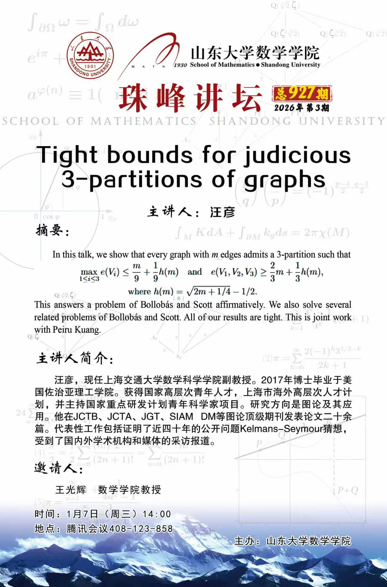 上一条:TapTap点点珠峰讲坛第928期:Optimal binding functions of some (even hole, cap)-free graphs