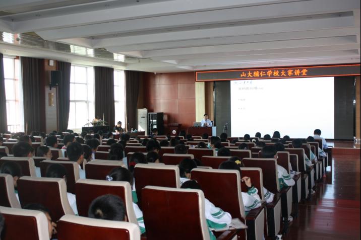 联合学习后,博士生导师、密码技术与信息安全教育部重点实验室王明强教授做客辅仁学校大家讲堂,为初中生做《数学与密码学》的科普讲座。他以生动有趣的语言简要介绍了密码在国家安全、军事、通讯、电子商务中的应用;通过历史上著名的密码学重大事件回顾密码学的发展进程;通过重要密码算法实例介绍数学问题在密码算法中的应用;通过形象的实例介绍密钥交换、多方安全计算、零知识证明的基本思想,展望了未来能抵抗量子计算机攻击的密码算法研究进展,并简要回顾了山大密码学研究起源和历史。报告赢得了在场师生的热烈掌声,山大辅仁学校300名师生在现场听取报告,另有部分师生在分会场视频聆听了报告。