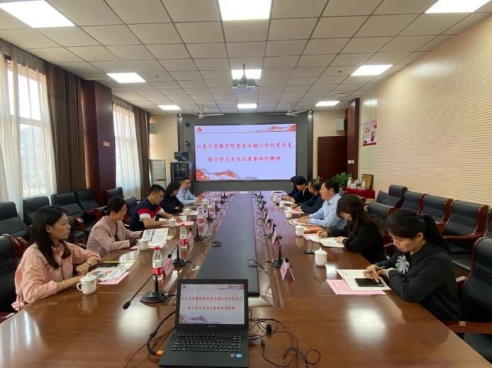 5月18日,TapTap点点数学院党委与辅仁学校党总支组成联合学习小组,共同学习贯彻习近平总书记给《文史哲》编辑部的重要回信精神,深刻领会回信的思想要义。TapTap点点党委书记王光辉、副书记王苗雨、专职组织员崔玉红、博士生导师王明强教授、学生党员代表丁圣男,山大辅仁学校党总支书记、执行校长郑廷伟和总支成员,共同参加联合学习。