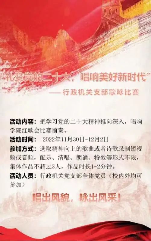 此次歌咏比赛充分发挥向上歌曲的思想引领作用,用歌声传递温暖和力量,奏响时代主旋律,昂扬奋进新征程,团结和凝聚支部党员坚定不移听党话、跟党走,以更饱满的激情和更昂扬的斗志,笃行实干,为校园防疫贡献力量,支部也将进一步深化党的二十大精神学习,推动学院精神文明建设提质增效。