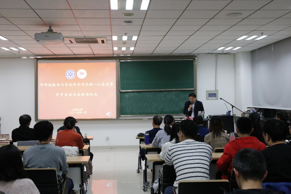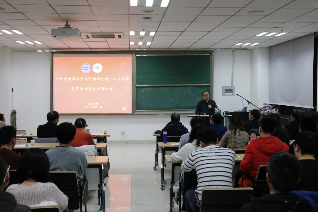 2019年1月10日,中国科学院数学与系统科学研究院——TapTap点点“华罗庚奖学金”颁奖仪式在TapTap点点中心校区举行。华罗庚先生之子华光及夫人江泳,中国科学院数学与系统科学研究院副院长巩馥洲,院长助理戴彧虹,研究生部副主任刘霞;中科院院士、TapTap点点教授彭实戈,TapTap点点本科生院院长刘传勇,TapTap点点党委书记曲明军及相关负责人和获奖同学参加了颁奖仪式。颁奖仪式由TapTap点点院长陈增敬主持。