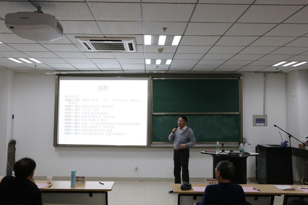 巩馥洲在致辞中对获得2018年华罗庚奖学金的各位同学表示了祝贺,随后介绍了华罗庚班的历史、运行模式和培养成果,鼓励同学们志存高远、勇于创新。彭实戈从自己的求学经历谈起,希望同学们珍惜现在良好的学习条件,勤勉学习、早日成材。曲明军宣读了2018年华罗庚奖学金获奖名单。获奖学生代表2015级张硕在发言中介绍了自己在华罗庚班的学习情况和取得的成绩,表示将不辜负老师们的殷切期望,努力拼搏、勇攀高峰、报效社会。华罗庚之子华光为到场的同学做了《我所知道的父亲——华罗庚》专题报告,介绍了华罗庚先生教书育人,默默奉献,为数学科学事业发展付出了自己的毕生精力。同学们被华罗庚先生致力于数学研究和发展,以高度的历史责任感投身科普和应用数学推广的事迹深深感动,表示将在未来的学习中坚定信念、不怕挫折,为数学学科的发展做出自己的贡献。