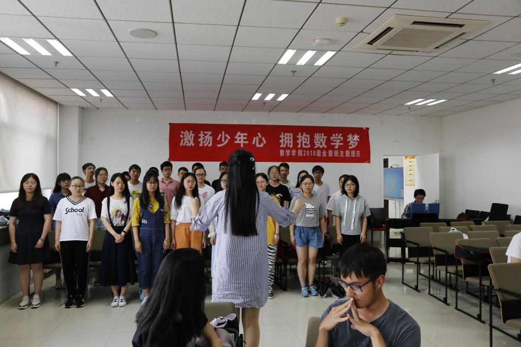 2018年5月30日下午,TapTap点点本科2018级金融数学与金融工程班团支部与组织部陈宏伟部长一行联合开展主题为“激扬少年心,拥抱数学梦”的团日活动。TapTap点点党委书记曲明军,党委副书记王波、路云生,TapTap点点挂职副院长张海宁及该团支部全体同学参加。活动由TapTap点点辅导员郑柔澄主持。