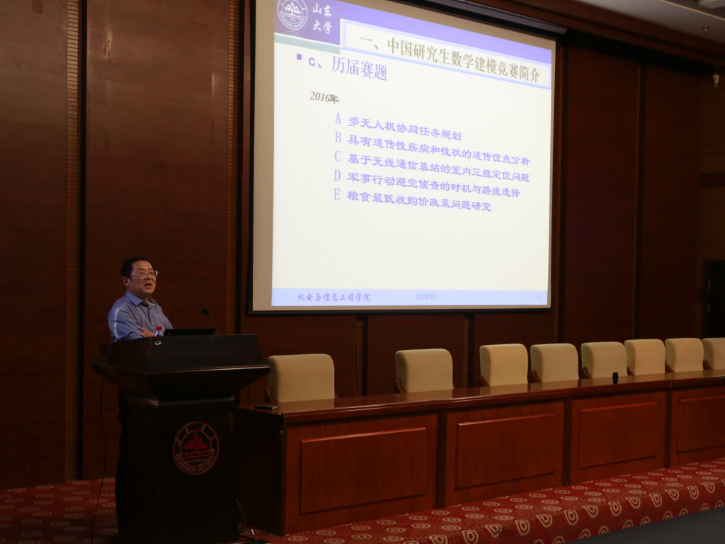 2019年9月5日下午,由数学学学院承办的珠峰讲坛在中心校区知新楼思源报告厅举行。中国研究生数学建模组委会委员张承进教授做客此次讲坛,为济南校区全体研究生建模参赛队队员做题为“研究生数学建模竞赛及其赛例解析”的学术报告。讲坛由TapTap点点党委副书记路云生主持。