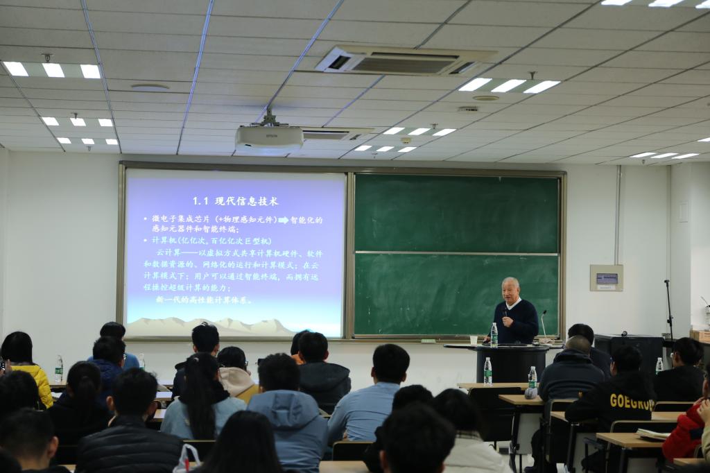 颁奖仪式后,崔俊芝院士做了题为《从计算科学到大数据科学——漫谈数学交叉科学研究》的报告。崔院士严谨不失幽默地分析了数学交叉学科的发展和重要意义,希望大家能在接下来的学习中坚定信念、不怕挫折、攻坚克难、勇攀数学高峰。在场同学认真听讲,深受启发。