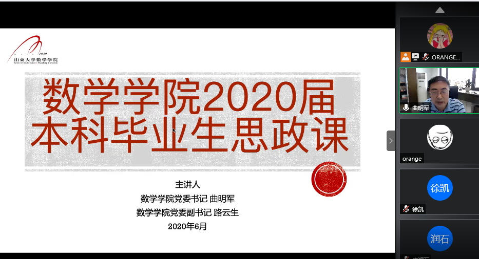 曲明军从疫情期间的返校工作安排讲起,结合疫情中凸显的我国制度优势和组织优势,鼓励全体毕业生志存高远、坚定信心、回馈社会。
