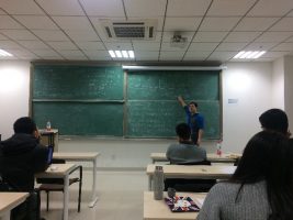 在此次报告中,吴河辉老师采用板书的形式给大家介绍了平均度条件下的图分解问题。首先,他由图分解的几个重要猜想作为引入,介绍了图分解的研究背景以及研究平均度条件下图分解的动机。接着,吴老师给大家详细讲解了平均度条件下图分解的证明过程:将原问题转化成规划模型,通过计算,找到0-1解,原问题解决。其中的计算过程非常复杂,但吴老师耐心地在黑板上给大家一步步推导。详细的推导过程让老师和同学们对该问题有了更深刻的印象,加深了对证明方法的理解。吴老师教导大家,对于复杂的计算,一定要耐心推导,其实很多灵感和想法都来源于计算过程。在提问环节,老师和同学们讨论热烈,吴老师一一解答了大家的疑问。最后,吴河辉老师还提出了一些未解决的问题以待研究。