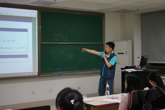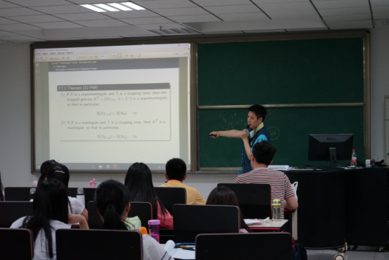 黄建辉教授第一次授课中首先介绍了学习随机过程之前需要掌握的一些基本概念和必要的数学工具,例如集合论、数学分析、测度论等,简要回顾了数学发展历程:从集合论公理化体系到数学分析再到测度论。之后,黄建辉教授介绍了概率论中的基本概念,重点强调和讲解了数学期望和条件数学期望的概念以及相应的极限定理——单调收敛定理、Fatou引理、控制收敛定理之间的关系。接下来数次课程黄建辉教授正式提出随机过程以及与之相关的前沿研究课题,诸如Large Population Systems、 Mean Field Games等,引起了广大学生的兴趣和讨论。在随机分析相关课程的内容上,黄建辉教授重点强调和讨论了鞅的概念以及性质,细分离散鞅、连续鞅、局部鞅,并联系实际应用使得大家对于所学随机分析的背景有了一定的了解。最后引入随机积分、Ito公式、鞅表示定理以及随机微分方程(SDEs)的概念。课程中充分结合实际问题例子的讲解方式,使得学生们不只停留在抽象的数学问题中学习随机过程,并且能够中具体例子中体会到这门学科的作用以及魅力所在!