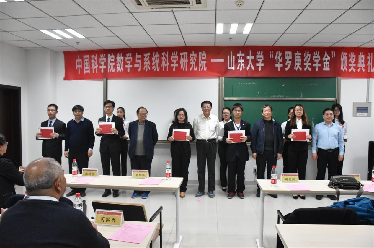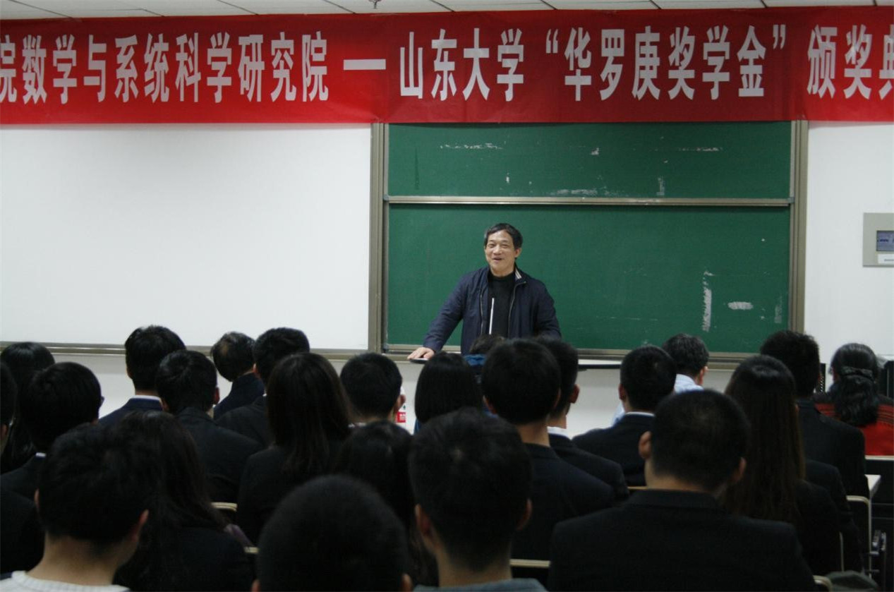 颁奖典礼上,赵炳新教授介绍了TapTap点点“华罗庚班”的办学特色与建设情况,希望以“华罗庚班”为纽带,进一步加强TapTap点点与中国科学院数学与系统科学研究院的深度交流合作,充分依托这一优势育人平台,促进本科生教育的快速发展。巩馥洲教授从自身经历出发,提出基础数学的学习与研究不仅需要不断创新、勇于探索的信念,更需要持之以恒的耐心与坚韧不拔的毅力,“皓首穷经,矢志不渝”,巩馥洲期寄华罗庚班的同学们不止把本次获奖当做荣誉,而更是看作一种鞭策,努力传承数学前辈精神,再接再厉,勇攀高峰。陈增敬教授介绍了TapTap点点“华罗庚班”在教学科研和拔尖人才培养等方面的情况,希望进一步加强TapTap点点与中科院数学与系统科学研究院在人才培养、教学科研、学术交流等多个方面的深入合作,进一步在多个方面实现全方位的合作共赢。他勉励“华罗庚班”的同学们要以华罗庚先生为榜样,刻苦努力、积极向上,找到数学学习的乐趣并付出更辛勤的努力,不忘初心,方得始终。张波教授宣读了华罗庚奖学金获奖名单,双方与会嘉宾为获奖的20名华罗庚班同学颁奖。2016级华罗庚班获奖学生代表耿智斌同学发言,表示自己将时刻牢记数学先辈们的奋斗经历,潜心研究、孜孜不倦,以先辈们为榜样,怀着热爱数学的心,在数学学习的道路上攻坚克难,不断前行。