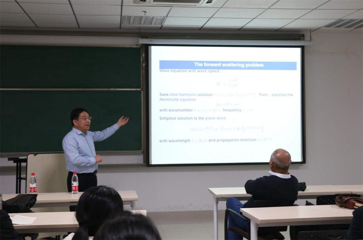 颁奖仪式后,华光先生在《我的父亲华罗庚》专题讲座中深情讲述了父亲华罗庚先生的伟大一生。在讲座中,他多次提到勤奋的重要性,“聪明在于勤奋,天才在于积累”。华光先生还引用华罗庚先生所言“宇宙之大、粒子之微、火箭之速、化工之巧、地球之变、生物之谜、日月之繁,无处不用到数学”,向同学们说明数学是取之生活而用之生活的,希望同学们在学好数学基础的同时学以致用,做一个有利于社会、有利于国家的人。中科院的各位嘉宾和老师还在典礼之后举办的“我与数学家面对面系列访谈”活动中,与获得华罗庚奖学金的同学们进行深入座谈,共同畅谈数学研究感悟并为同学们答疑解惑;巩馥洲在座谈中着重强调学术态度与科研方向,希望同学们能够“不忘初心”,诚恳认真地对待自己心中最初的理想,在数学道路上砥砺前行。同时,张波教授还做了关于逆散射法理论与计算的学术讲座。