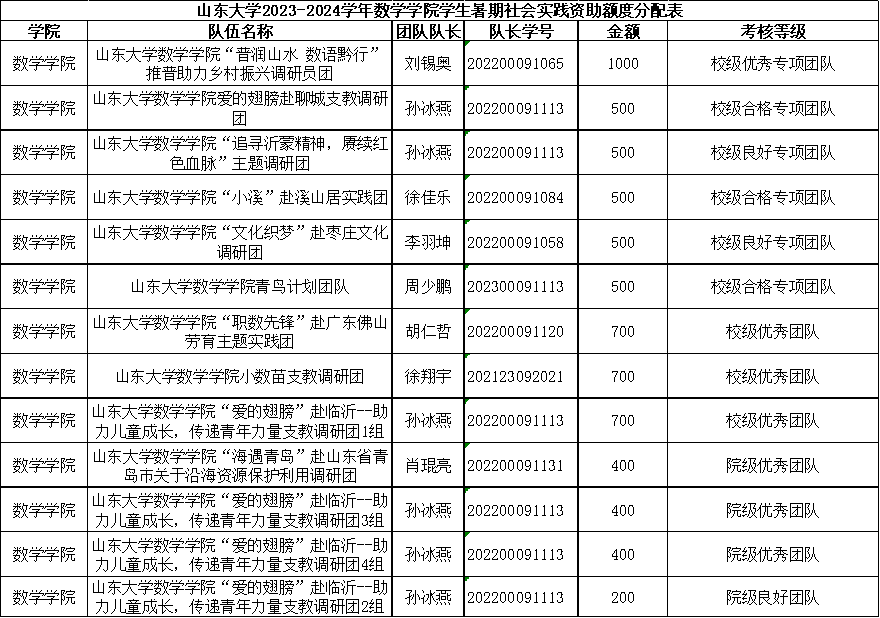 3.本次公示内容为学校资助分配,学院资助分配的有关政策请关注后续通知。