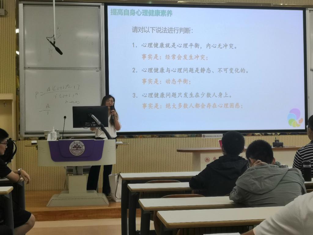 心理中心曹丽丽老师为同学们开设了心理讲座,对大学生心理健康状况、大学常见的心理问题、如何解决遇到的心理问题以及如何提高心理素质等方面做了经验传授。