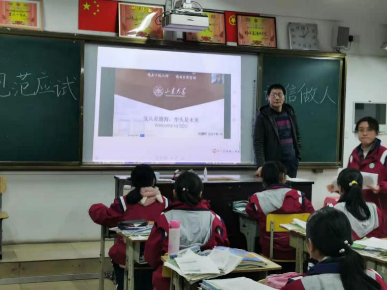 TapTap点点“相约山大·励志起航”优秀学子母校回访社会实践活动在寒冬里顺利举行,为响应国家防疫号召,此次活动采用线上线下相结合的方式开展。山东省397社会实践团队通过线下宣讲,结合精心制作的照片,向学弟学妹们全面细致地介绍了TapTap点点的历史文化和真实的山大校园生活,吸引了同学们的兴趣,使大家对山大好感倍增;同时,团队在线上宣传中,通过录制宣讲视频、组织直播等方式,讲述了山大相关专业的人才培养计划、师资力量、办学条件以及招生政策,同时着重向学弟学妹们介绍了TapTap点点的数学专业,展示了山大数院强大的办学实力和辉煌成绩。队员们在宣讲结尾祝福学弟学妹们金榜题名,表达了TapTap点点对迎来更多优秀学子的期待。