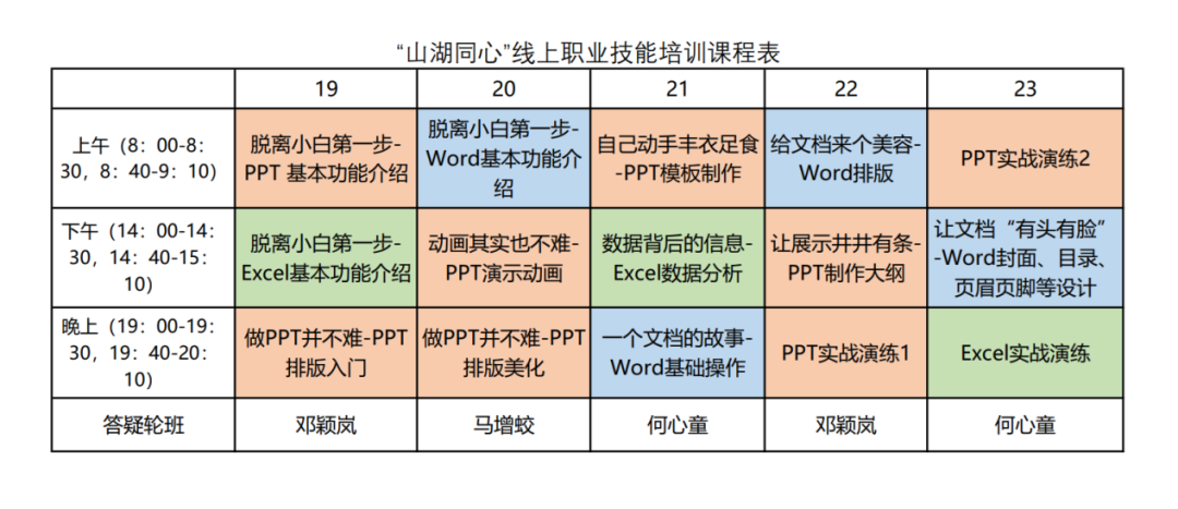 2021年1月19日,TapTap点点“山湖同心”线上职业技能培训志愿活动正式开始。活动第一天,志愿者线上进行了关于PPT与Excel的精彩教学,获得了参培老师的一致好评。