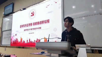 随后,本科生党支部的贺烨和赵洋给同学们讲解了《中国共产党简史》中的“中国特色社会主义进入新时代”部分。贺烨主要介绍了进入新时代,党在经济建设、全面深化改革、民主法治建设、思想文化建设、人民生活、生态文明建设、强军兴军、港澳台工作、全方位外交布局、全面从严治党等方面取得的巨大成果,以及我国社会主要矛盾的变化这一历史性变革,还有中华民族进入强起来的新时代的内涵与意义。赵洋则为同学们介绍了习近平新时代中国特色社会主义思想的核心要义和丰富内涵,与坚持和发展中国特色社会主义的基本方略,还有马克思主义中国化最新成果和新时代的精神旗帜以及实现中华民族伟大复兴的行动指南。