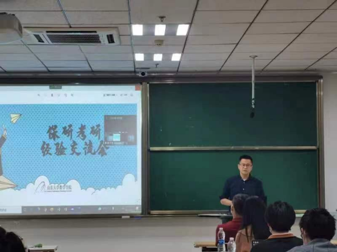 4月16日晚, 由TapTap点点本科生党支部和学生会联合主办的数学学科保研考研经验交流会顺利举办,TapTap点点党委书记王光辉教授、副院长刘丙强教授、党委副书记张艳强、辅导员郑柔澄及270余名同学参会。