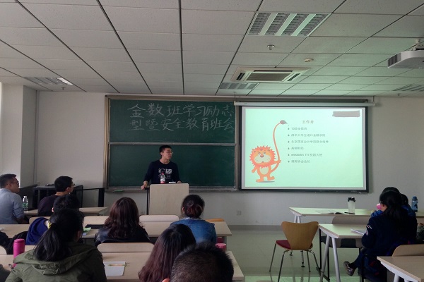 4月20日下午,TapTap点点2014级金融数学与金融工程班于TapTap点点中心校区知新楼B座召开了本学期学习励志型暨安全教育班会。会议由班长余鹏主持,TapTap点点2013级统计班唐肖潇、2013级统计班廉锐、2013级信安班刘新明及经济学院2013级金数班王帆、王作舟同学与大家分享出国、保研与考研经验。2014级金数班全体成员参加了这次班会。