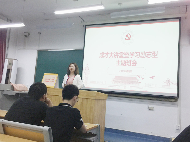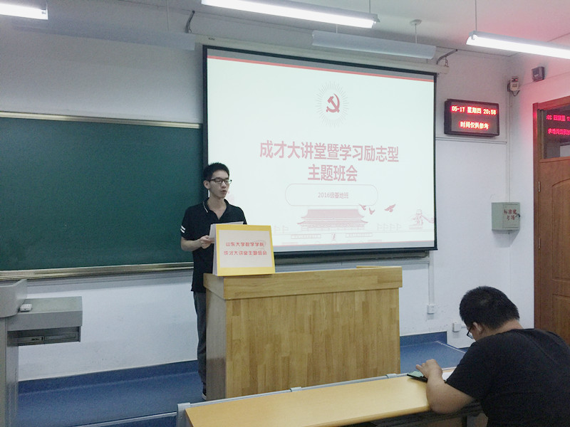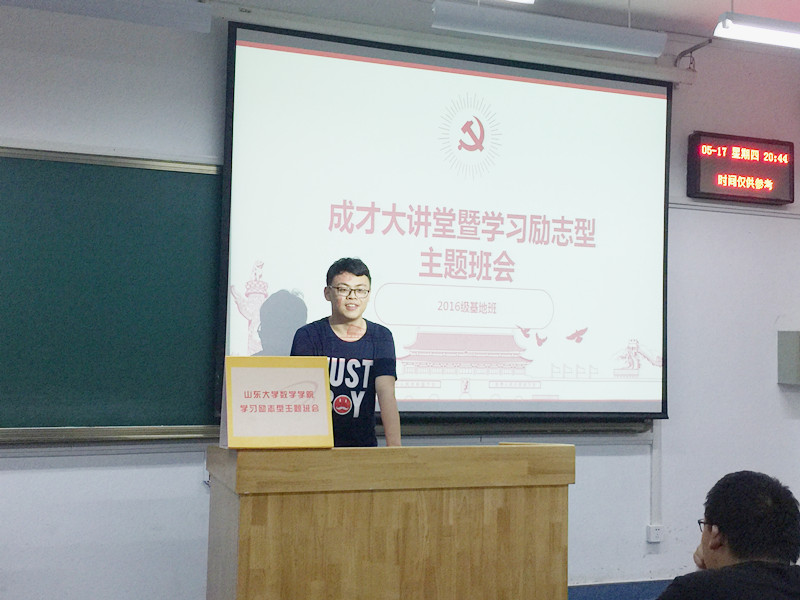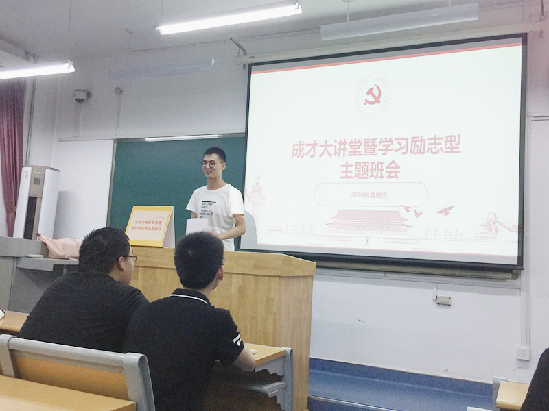 5月17日晚,TapTap点点2016级基地班在中心校区公教楼举行成才大讲堂暨学习励志型主题班会,会议邀请到辅导员郑柔澄老师,以及2014级吴纪龑、马成林、刘兆磊、刘朝锋四位学长与同学们交流。会议伊始,郑老师表达了受邀参加班会的喜悦与欣慰,对2016级基地班全体同学表达了殷切的期望。