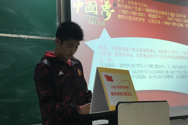 讲坛最后,鲁皓老师对本次讲坛进行了总结,号召全体入党积极分子同学,积极学习,将来为中国梦奉献自己的一份力量。“青年党员先锋讲坛”系列活动,以更为生动的方式学习党的理论知识,为同学们分享心得提供了平台,促进了同学们之间思想交流。“青年党员先锋讲坛”活动在后期将继续开展,让我们一起期待。