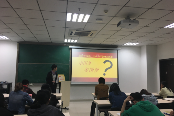 米俊喆同学先引用习近平总书记的讲话,阐述了中国梦的含义,“实现中华民族伟大复兴,就是中华民族近代以来最伟大的梦想”,中国梦的最大特点,就是把国家、民族和个人作为一个命运的共同体,把国家利益、民族利益和每个人的具体利益都紧紧地联系在一起。接着,王书琛同学从两个角度去定义中国梦,一方面,中国梦是我们国家与民族的梦想,是一种特定的、整体性的思想意识和目标方向,是思想意识和目标指向的高度融合统一,是中华民族正在万众一心、努力奋斗的共同理想;另一方面,中国梦是两个百年具体目标,是实现中华民族伟大复兴的具体指导,从三步走战略,到三步走战略的进一步展开,直至党的十八大提出中国梦,党的十九大两个十五年,中国共产党带领人民在民族复兴、国家富强的道路上一步步前进。张亚琪从党的历代领导人的思想出发,借用近代实例,展现我国一步步为实现中华民族伟大复兴的中国梦而进行的奋斗,从而总结出我国要实现中国梦的现实意义。最后,刘振宇同学通过中国梦与其他国家梦想的对比,向同学们展示中国梦不是他国的翻版,而是植根于中华民族的精神、基于中华民族从传统走向现代的价值追求、基于社会主义现代化建设的成功实践,有着鲜明的中国特色,再次深刻阐释了中国梦的含义。