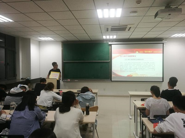 “四个意识”具体是什么?刘嘉诚向大家作出了讲解。“四个意识”分别是指政治意识、大局意识、核心意识、看齐意识,由习近平总书记提出,是对党员同志的要求。增强“四个意识”是对党的建设重要经验的科学总结,对党章党规重要内容的深度凝练,也是对全面从严治党根本要求的强化提升,必须深刻认识其科学内涵和重要意义。接下来他又具体解释了“四个意识”的科学内涵和重要意义。