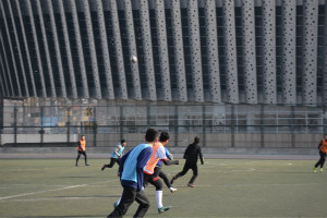 严寒的天气丝毫没有阻挡队员们的热情,队员们早早地就来到了足球场上,开始了热身。比赛于9:15左右开始。起初,一队进攻在陈鸿凡,李劲松的梳理下逐渐奏效,通过中路渗透,球输送到侯卓鹏脚下,二队由于后防默契不足,未能盯防,侯卓鹏左脚打门,皮球窜入网窝,一队1:0领先。之后,傅诗文和张进这对院队锋线搭档展现出了他们之间的默契,傅诗文送出直塞,张进单刀破门!比分变为1:1。之后双方有来有往,各由黄泰榕和傅诗文打进一球。第一节比赛两队战成2:2。经过第一节的比赛,双方身体逐渐进入状态。卢振宇和闫振国的默契传导球,让二队的进攻更加强势,获得了很多破门良机,张进为二队打入两球。第二节临近尾声,一队的蒋东立凭借积极的拼抢在禁区获得良机为一队打入一球。第二节结束后一队暂时以3:4落后。第三节比赛,一队大举进攻,攻势如潮,无奈运气十分欠佳,多次击中横梁和立柱,而二队则抓住反击机会高效的打进两球,比分来到了3:6,这时院队主力前锋黄泰榕挺身而出,依靠个人能力打进一球,之后又制造角球并精确找到门前的闫振国,虽然头球攻门被后挡出,侯卓鹏门前机敏补射,比分变为5:6。之后一队再接再厉,代畅,陈鸿凡和李劲松远程攻门,给对方球门施压,努力得来了回报,黄泰榕禁区前接到陈鸿凡的传球,起脚劲射皮球直入球门左下角!6:6!之后虽然双方都有绝杀机会,但100多分钟的跑动后,把机会能力下降,双方都没有将机会转化为进球。