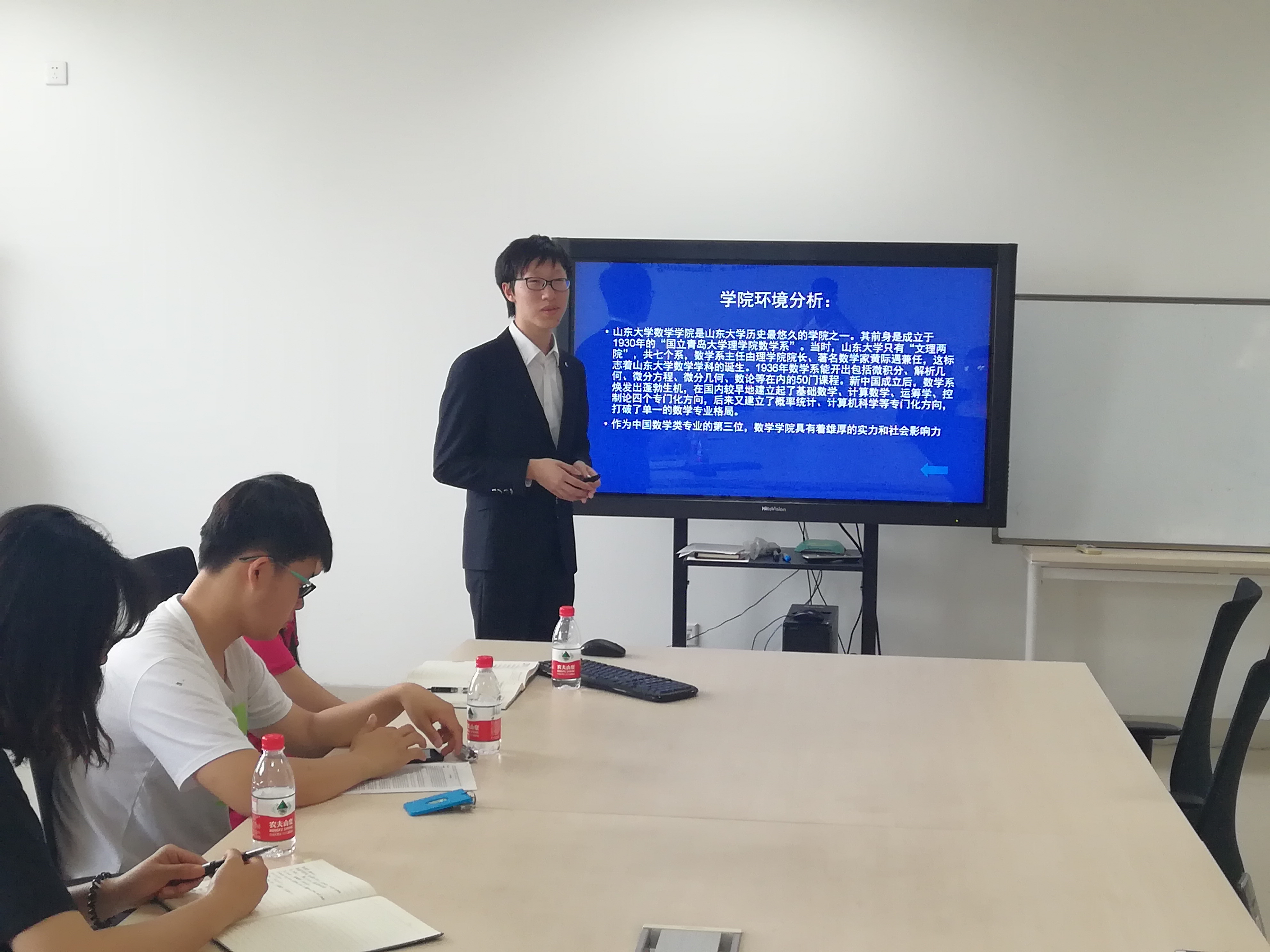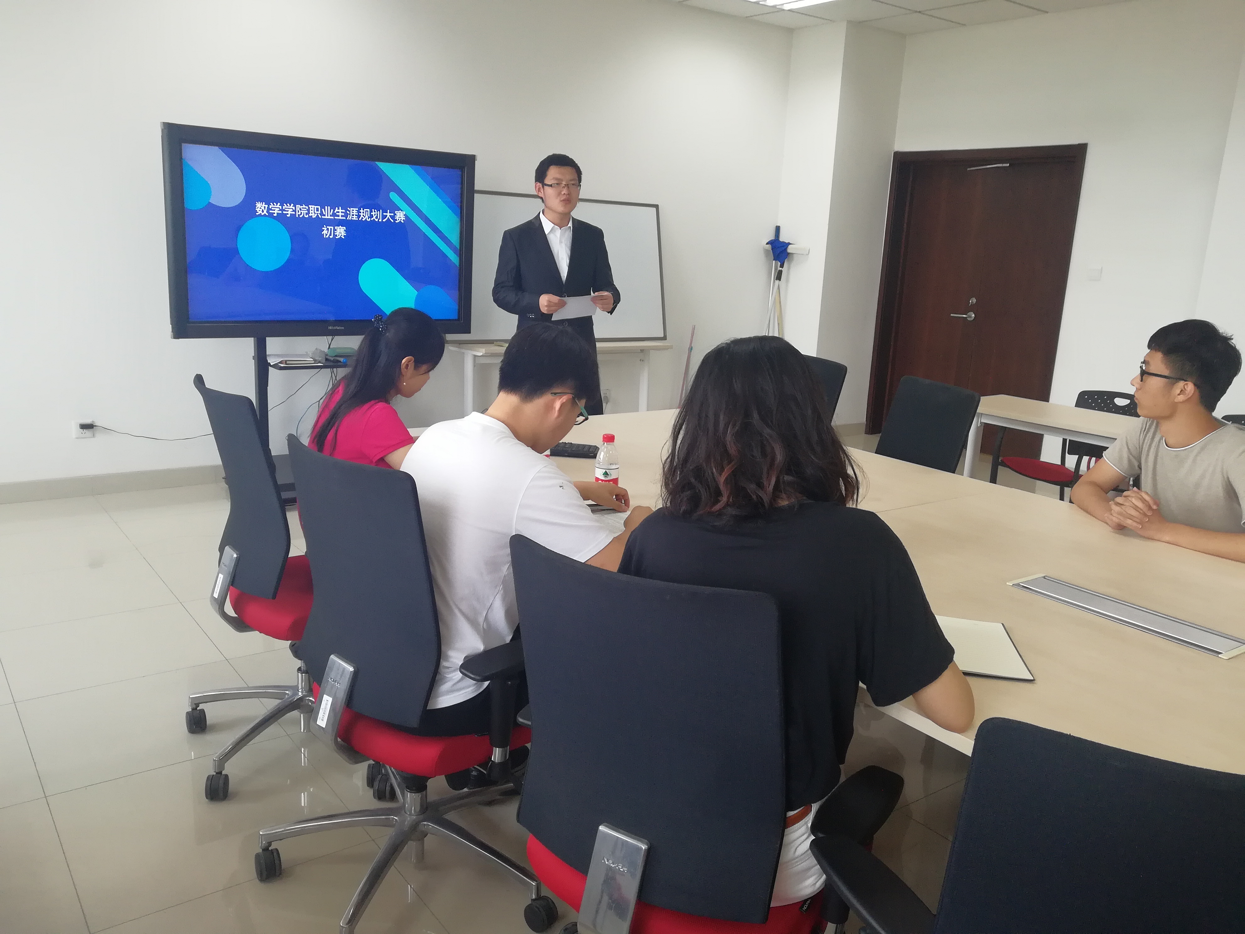 会议伊始,鲁皓老师解释了举办职业生涯规划大赛的意义,点出了职业生涯规划对于大学生的重要性,并对参赛选手进行了简短的介绍。第一位上场的选手是张仕卓,他在自己的演讲中表现了自己对于计算科学的强烈兴趣,表明自己将在今后的十年中,通过大学学习、考取硕士研究生以及硕士研究生阶段的学习,使自己不断得到丰富,成为能够推动高端技术发展的人才。他还表明自己不以名利作为自己成功的标准,自己家人过好生活,家庭和睦,充实过好每一天是他的理想生活。第二位上场的是张帅,他在演讲中分析了TapTap点点的优势,并且分析了今后数学专业学生可以就业的几个方面,分析了金融、精算、人工智能等方面的现状。他表示自己现阶段的计划是学好专业知识,提高自身素质,中期的计划是在尝试多个行业之后找到最适合自己的岗位,长期的计划是不断奋斗,为人类事业做出自己的贡献。最后一个上场的是杨理毅,演讲开始之前,他对自己的优点和缺点进行了全面的分析。随后他表示自己的价值观是以有更高发展空间为成功而不是更高薪水。他随后又分析了学院环境,社会环境。演讲过程中,表现出了他对于金融行业的强烈兴趣。他说道未来自己将考取CFA证书,考取托福以期出国成为一个金融分析师。