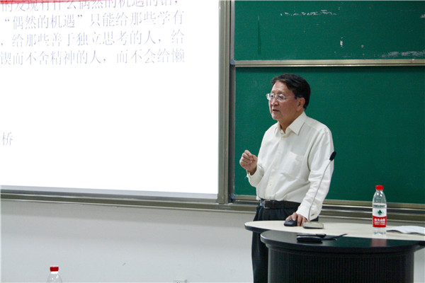 颁奖仪式后,华光先生在《我的父亲华罗庚》专题讲座中深情讲述了父亲华罗庚先生的伟大一生。在讲座中,他多次提到勤奋的重要性,“聪明在于勤奋,天才在于积累”。华光先生还引用华罗庚先生所言“宇宙之大、粒子之微、火箭之速、化工之巧、地球之变、生物之谜、日月之繁,无处不用到数学”,向同学们说明数学是取之生活而用之生活的,希望同学们在学好数学基础的同时学以致用,做一个有利于社会、有利于国家的人。中科院的各位嘉宾和老师还在典礼之后举办的“我与数学家面对面系列访谈”活动中,与获得华罗庚奖学金的同学们进行深入座谈,共同畅谈数学研究感悟并为同学们答疑解惑;巩馥洲在座谈中着重强调学术态度与科研方向,希望同学们能够“不忘初心”,诚恳认真地对待自己心中最初的理想,在数学道路上砥砺前行。同时,张波教授还做了关于逆散射法理论与计算的学术讲座。