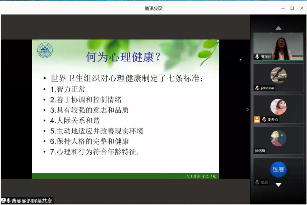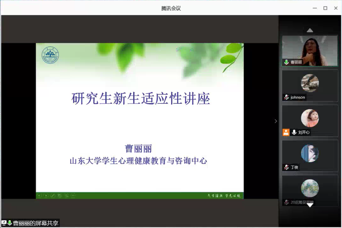 为提高学生心理素质,帮助同学们树立正确的心理健康观,TapTap点点于2020年9月18日邀请到TapTap点点学生心理健康教育与咨询中心的曹丽丽老师,为2020级研究生新生开展了心理健康讲座。