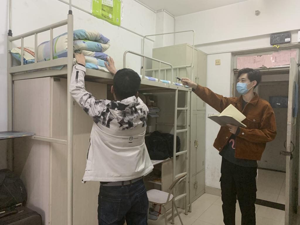 学院研究生宿舍卫生安全检查工作组来到中心校区和洪家楼校区的学生宿舍,细心地查看了宿舍的卫生情况,并深入各个宿舍现场进行消毒和杀菌工作,从卫生间到阳台、从顶灯到床底,全方面消灭卫生死角,整治和防止病毒传播。在本次检查中,各宿舍卫生和安全情况良好,大多数宿舍卫生保持干净整洁,个人物品摆放有序,宿舍环境舒适温馨。针对个别宿舍以及同学的个人用品摆放杂乱、不叠被褥,以及发现的一些安全隐患和卫生死角等问题做了详细登记,并要求同学们在第一时间进行整改。