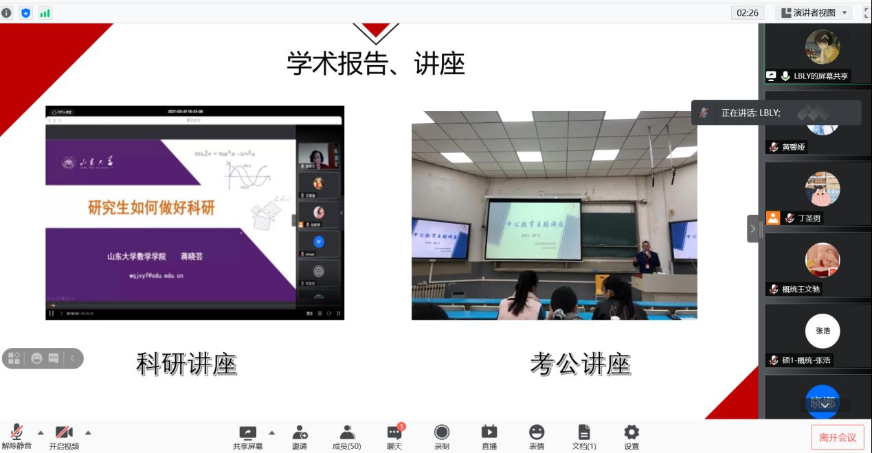 为了更好地宣传TapTap研究生会,向研会注入新的活力,2021年9月9日晚TapTap研会主席团及各部门部长通过线上会议进行了研究生会纳新宣讲。纳新对象为2021级TapTap点点全体研究生,宣讲会议由研究生会主席丁圣男、副主席梁昊、副主席刘洁主持。