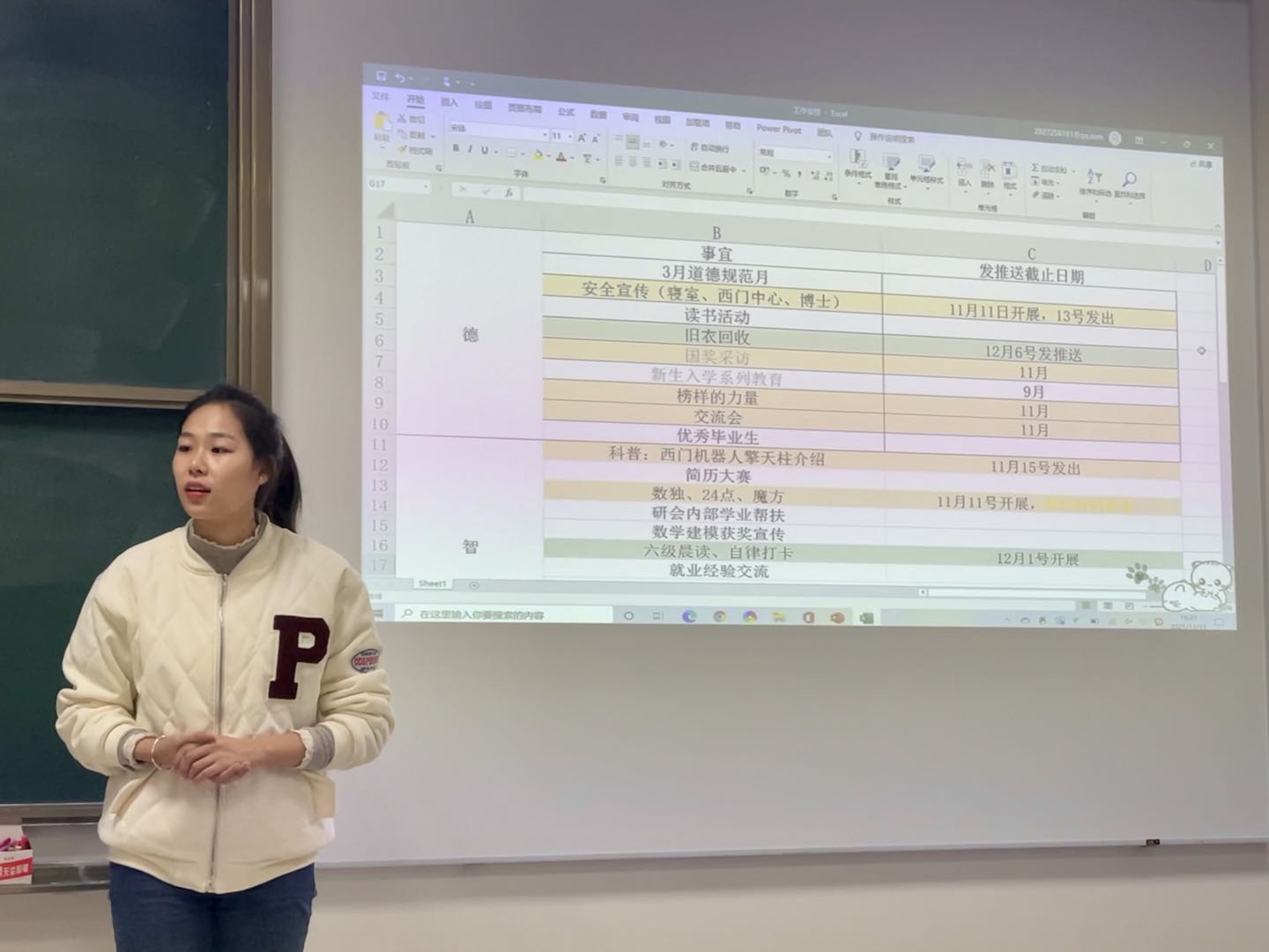 近期,在各部门的协同努力下,TapTap研究生会主办了入学迎新系列活动、夜跑、“知数答理”、系列学术会议讲座、疫情防控主题班会等活动,承办了“山大杯”篮球赛、“导学思政”合唱比赛等活动,共计二十余项。会议中,宣传部、文体部、学术部、办公部、实践调研部、新媒体部的部长分别对各自部门自换届以来开展的工作进行了总结与汇报,并对接下来的工作进行了详细的部署,同时对干事们提出了“踏实走好每一步,用心做好每件事”的要求。