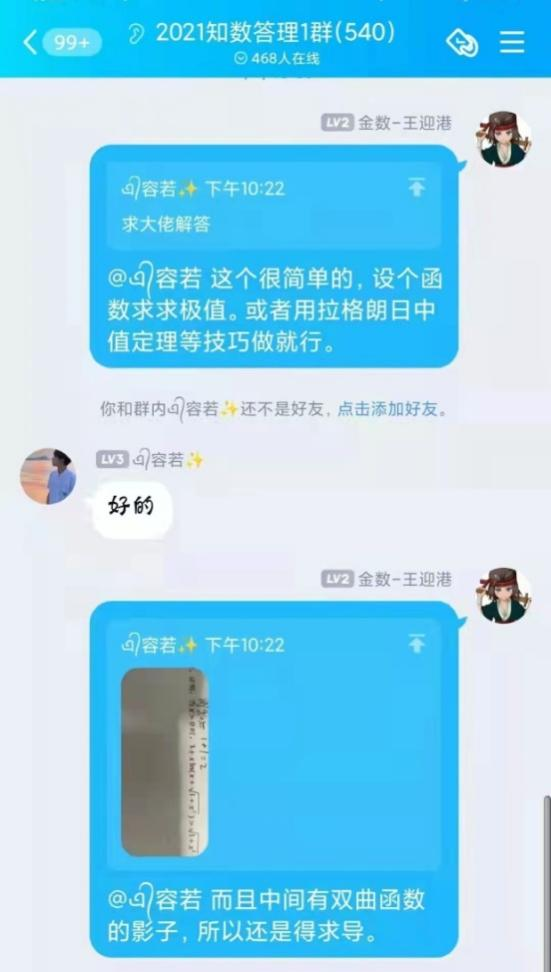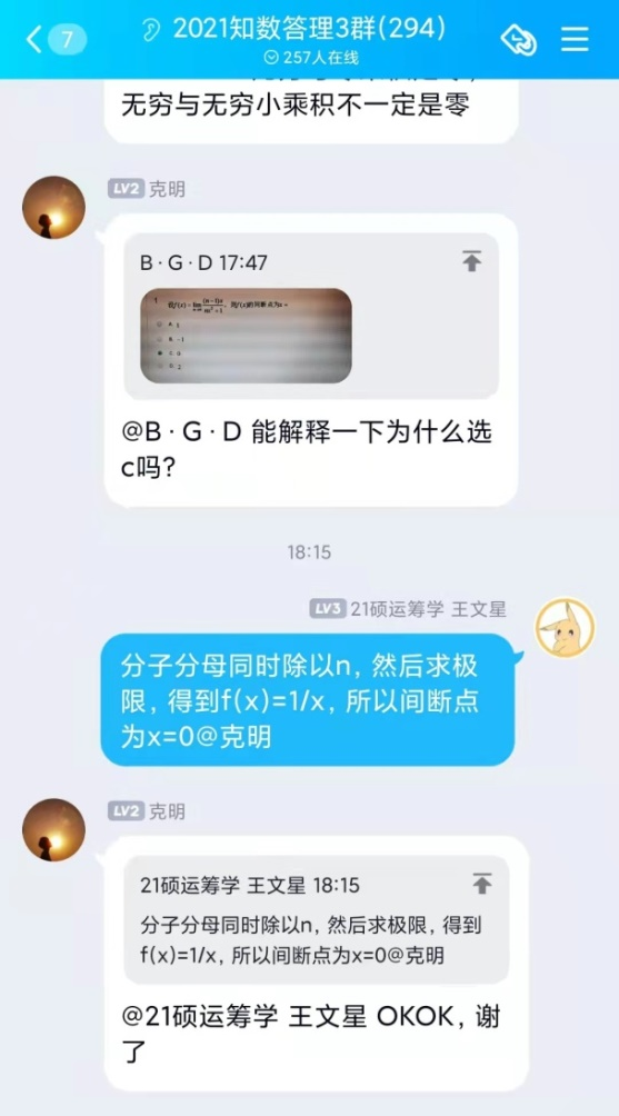 自活动开展以来,共收到来自全校一千四百余名同学加入答疑群的申请,TapTap点点“阿尔法”答疑志愿团队,平均每周解答疑问近两百条。志愿者们耐心地为同学们讲解定理证明,分享解题技巧,梳理答题思路,引导同学们由“被动接受”转向“主动思考”,在加深自己对数学基础知识理解的同时,体会到以自己所学服务、帮助他人的成就感与幸福感。活动开展期间,同学们积极讨论,勤于思考,不仅及时解决了在数学学习上遇到的问题,更提升了数学学习能力,激发了学习数学的积极性。
