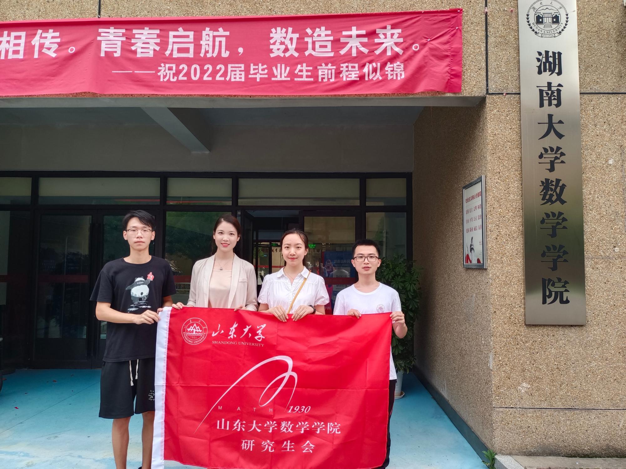 在对武汉大学的交流访问中,王子豪首先对TapTap点点研究生会主席团的到来表示热烈的欢迎,带领研会成员参观了武汉大学校园,讲述了武汉大学悠久的历史文化。随后,双方在会议室进行了交流学习,TapTap点点研究生会主席王玺祥从深化组织改革、聚焦主责主业和代表性工作三个方面对TapTap点点研究生会展开介绍,详细阐述了TapTap研究生会德智体美劳全面发展的工作体系,着重介绍了针对解决实际困难开展的就业领航与战疫同行系列活动和知数答理品牌特色活动。王子豪针对两校研究生会的异同点展开介绍,包含轮值主席制度、管培制度、将党建工作纳入研会工作等,重点介绍了学院承办的省级精品活动---研究生数学讲课比赛,活动历经十六载,日趋成熟和完善,参与度和认可度很高。随后双方就如何让活动生动而深入人心、如何提升同学的积极性、如何加强同学之间的联系、如何守正创新、如何完善权益平台等问题展开深入的探讨,并就德智体美劳五育活动进行分享与探讨,相互借鉴、相互学习,碰撞思维的火花。最后,TapTap点点研究生会主席团向武汉大学数学与统计学院研究生会赠送TapTap点点文创作为纪念,并一同在武汉大学数学与统计学院门前合影留念。在同湖南大学的交流学习中,双方对研究生会的组织建设、活动开展情况展开交流,一致认为活动关键在精,要开展让广大同学受益的深入人心的活动。会后双方互赠礼物,合影留念。