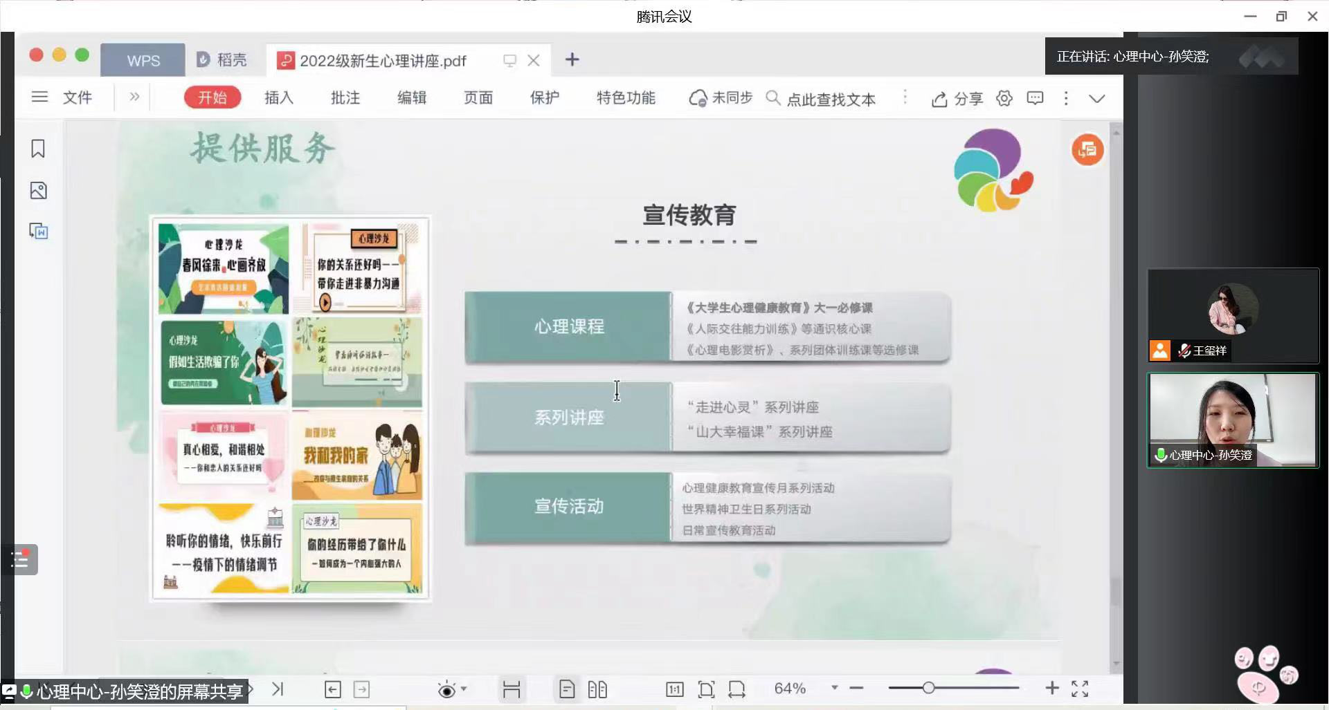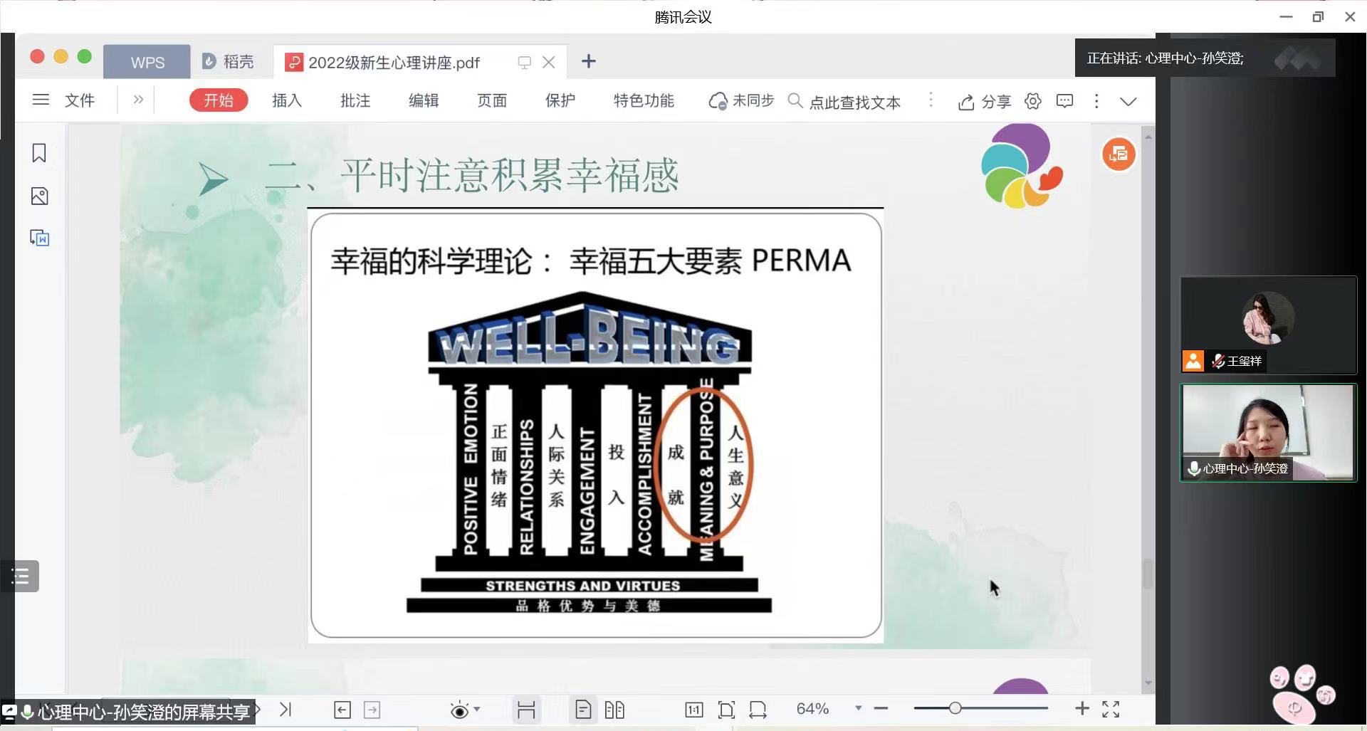 为了更好地引导新生正确认识研究生阶段可能遇到的心理问题,9月9日上午,TapTap点点心理健康中心的孙笑澄老师为2022级研究生新生开展了以“积极调适,未来可期”为主题的线上讲座。