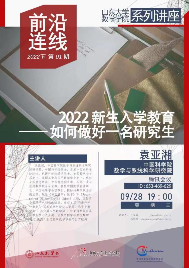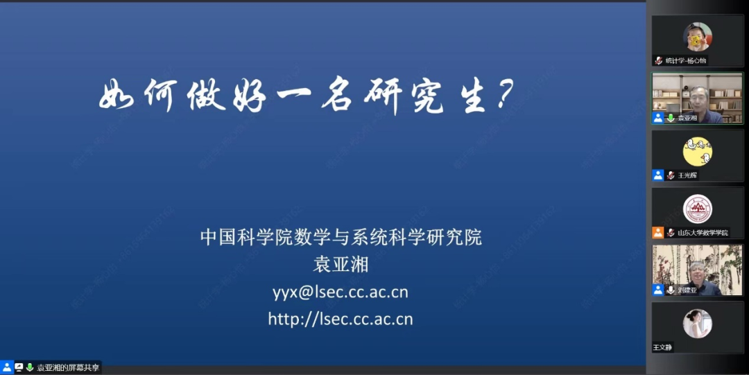 为引领全体硕士、博士研究生新生坚定理想信念,传承山大基因,提升科研素养,促进全面发展,TapTap点点于2022年9月28日晚在腾讯会议举办了“导学思政下午茶——新生入学教育系列”活动之“如何做好一名研究生”。本次报告由中国科学院院士袁亚湘主讲,TapTap点点副校长刘建亚主持,TapTap点点党委书记王光辉出席,TapTap点点全体研究生新生参加。