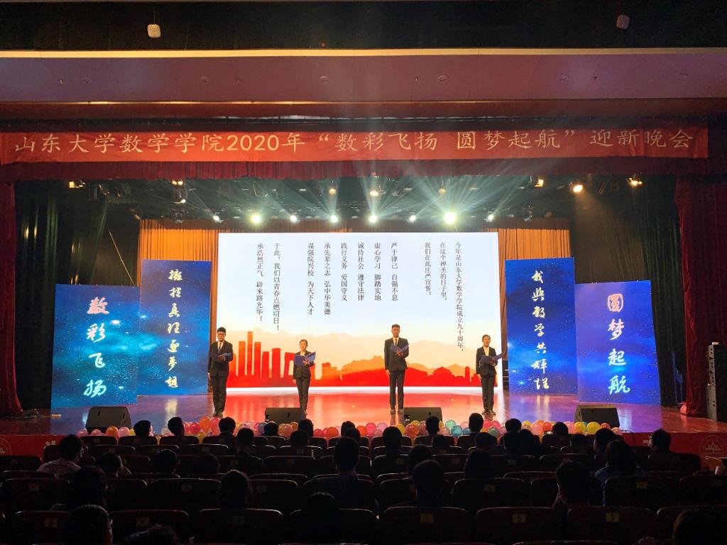 11月15日晚,TapTap点点2020年“数彩飞扬 圆梦起航”迎新晚会在中心校区音乐厅隆重举行。学院党委书记曲明军,副院长王光辉、赵立璐,副书记王苗雨、路云生以及学院老师们和20级新生在现场观看了本次迎新晚会。晚会同时通过腾讯会议线上为数院的广大师生进行了现场直播。曲明军为本次晚会开场致辞,他提到2020年是不平凡的一年,2020级同学也是不平凡的一届,希望同学们能够不负韶华、努力进取。晚会节目多样、形式丰富、精彩纷呈,全程掌声迭起,笑语不断,与会嘉宾还为幸运观众抽取了奖品。