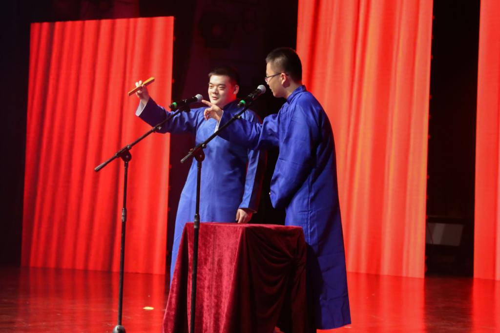随后,一个个精彩的节目相继呈现。二胡独奏《千本樱》,民族乐器的悠扬与电子音乐的动感结合催生了神奇的化学反应,令人耳目一新;情景剧《成人礼》结合当下网络流行词汇,生动形象地反映了人生哲理,令人在忍俊不禁时若有所思;相声《桃叶尖》展现了诙谐幽默的台词,通俗而不失趣味,惹人捧腹大笑;长笛与钢琴联合阐述的《大鱼》别有一番风味,不疾不徐,通过灵动的韵律,将深情和忧思娓娓道来;舞蹈串烧及《I can’t stop feeling special》以动感的音乐和极富张力的舞姿,演绎青春奔放之美感;歌曲《龙卷风》、《表态》、《Someone You Loved》带来一场音乐盛宴,余音绕梁,掌声不断,将晚会推上小高潮;910乐队献上的歌曲《we are young》点燃全场,热烈诉说少年人的意气风发,“我们正值年轻,即将原地起航”。