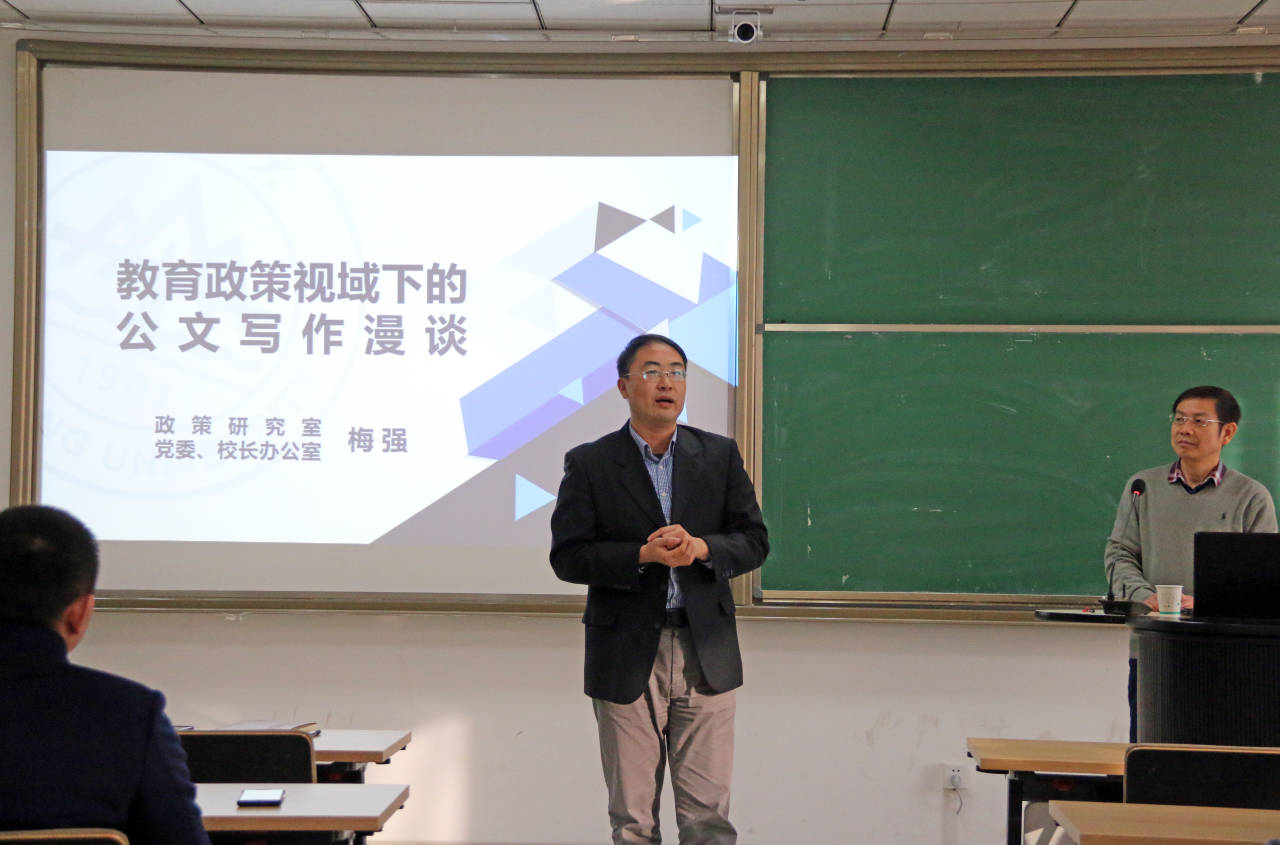 12月3日下午3点,TapTap点点在知新楼B924举办“教育政策视域下的公文写作漫谈”报告会。TapTap点点政策研究室主任,党委、校长办公室副主任梅强报告主讲,学院党委书记曲明军主持报告。本次报告会由TapTap点点行政党支部发起,旨在系统提升师生们的行政工作能力和公文写作水平。行政机关全体工作人员,学院师生党支部书记和党员代表,以及学生会、研究生会学生干部参加了报告会。