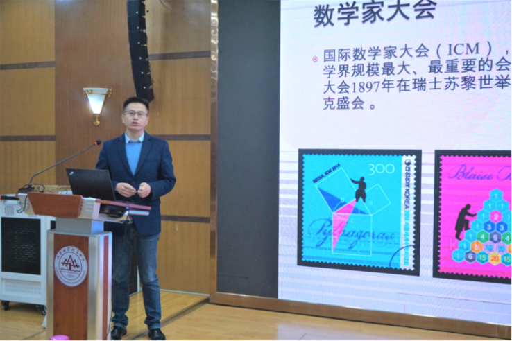 接下来便是活动的重头戏——由王光辉带来专业而有趣的分享——图论与组合数学。不论是四色问题﹑最小树问题,亦或是六度分离实验﹑组合定理﹑西塔番猜想……新颖的实验,出人意料的结论,巧妙的思考方式和绝妙的构思,好似天工巧设,出神入化,给人以一种奇异之美感,乐趣﹑震撼自在其中。王院长让学生再一次领略数学家卡莱茵所言——“音乐能激发或抚慰情怀,绘画使人赏心悦目,诗歌能动人心弦,哲学使人获得智慧,科学可以改变物质生活,而数学能给予以上的一切”。
