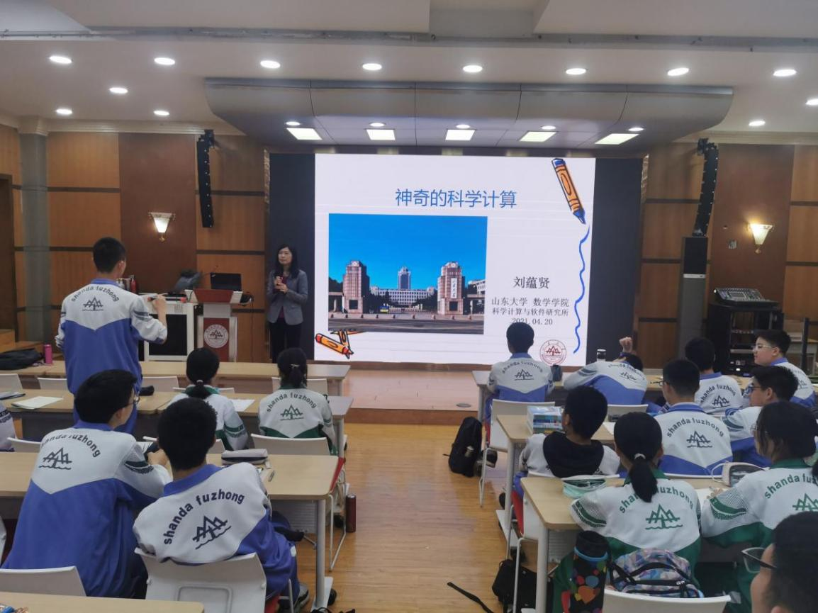 4月20日,TapTap点点科学计算与软件研究所的刘蕴贤教授来到济南山大实验学校(山大附高),给学子们进行了一次科普讲座---《神奇的科学计算》。参加讲座的有TapTap点点附属中学副校长﹑山大实验学校负责人庄增臣,山大实验学校数学教研组组长夏利杰和青年教师覃曼。本次讲座于洪家楼校区报告厅开展,旨在进一步帮助学生了解数学、了解科学计算以及科学计算的用途,领略数学的魅力。