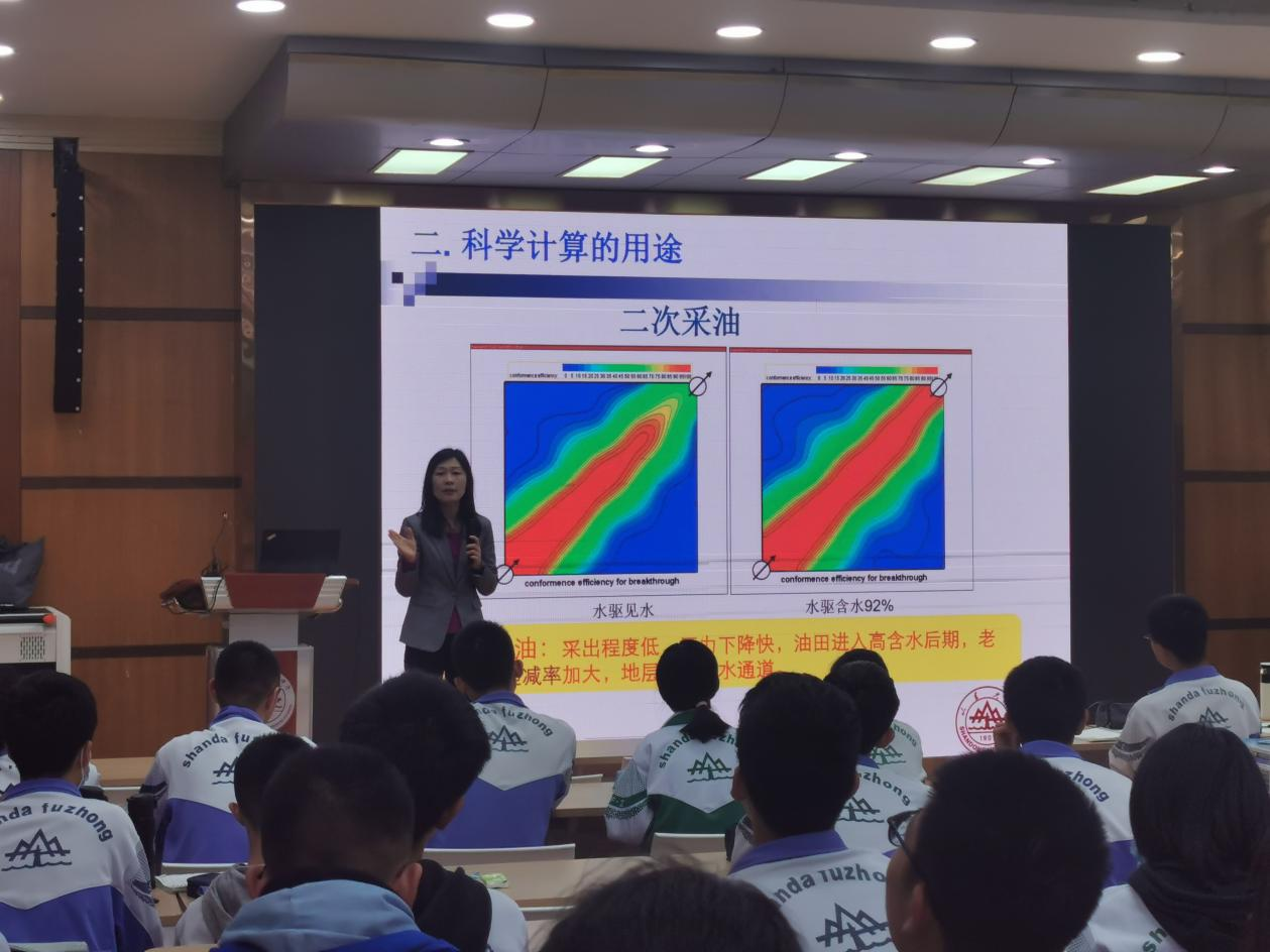 随后,刘蕴贤给同学们讲解了科学计算的用途:油藏数值模拟、半导体器件模拟、核反应模拟、天体运行模拟、飞机制造、材料设计、海水入侵、生物医药、数值天气预报、生(增)长模拟、图像处理......大到航天航空,小到日常生活,都离不开科学计算。