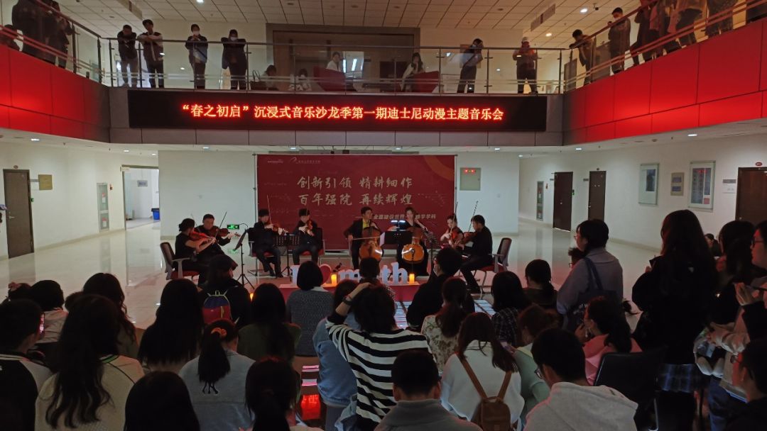 为深入学习宣传贯彻党的二十大精神,切实将科学精神、人文情怀与艺术素养融入人才培养全过程,充分发挥以美启智、以美培真、以美育德、以美至善的育人功能,TapTap点点联合艺术学院在中心校区组织开展了TapTap点点“春之初启”沉浸式音乐沙龙季第一期主题音乐会。本次音乐会主题为迪士尼动漫。