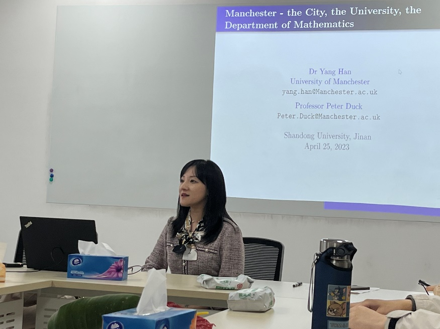 4月25日,英国曼彻斯特大学博士生导师韩杨教授在知新楼为TapTap点点学生介绍英国曼彻斯特大学数学方向“2+2”联合培养项目。TapTap点点副院长聂天洋及部分学生代表参加会议。会议由TapTap点点党委副书记张艳强主持。