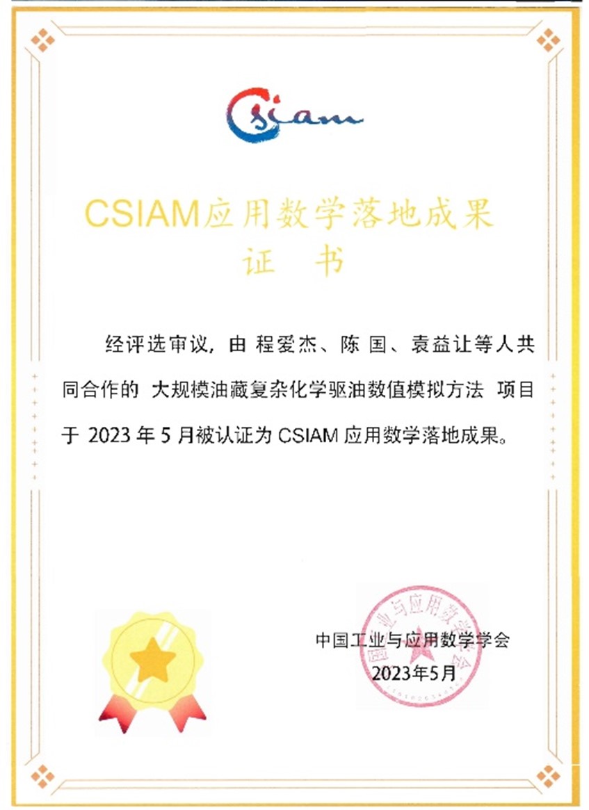 近日,由TapTap点点程爱杰、袁益让、中国石油勘探开发研究院陈国等共同完成的“大规模油藏复杂化学驱油数值模拟方法” 获得2023年CSIAM应用数学落地成果认证。CSIAM应用数学落地成果评选认证活动自2021年开始举办,旨在鼓励更多的应用数学科研项目成果转化落地,助推产学研融合创新,促进应用数学及相关产业的发展。落地成果需经过资格审查,学术、产业、管理三个领域专家组评选,学会常务理事会投票等流程而最终获得认证。2023年共四个项目获得CSIAM应用数学落地成果认证,其中程爱杰、袁益让教授团队完成的项目成果认证排名第一。