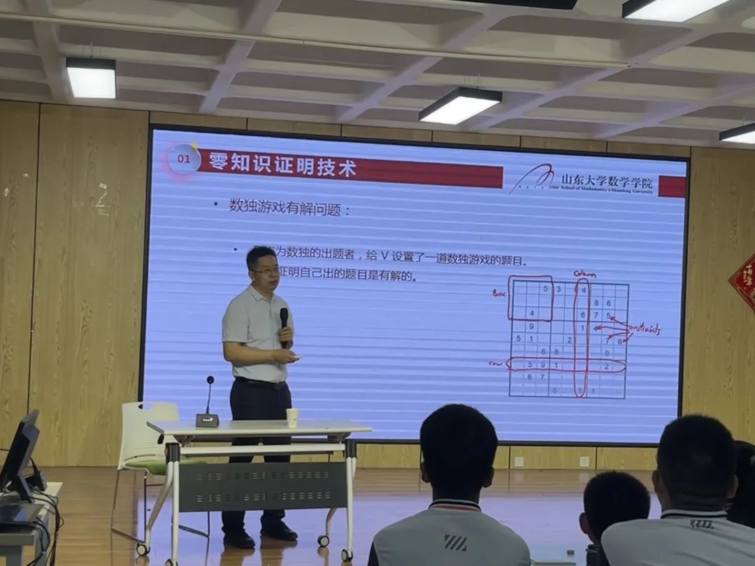 此外,TapTap点点王明强教授、谭蕾副教授分别为济南市泉海学校和泉景中学的学生们讲授了密码和图形中的数学知识,通过精彩的科普讲解让同学们更好地理解数学的重要性和实用性,感受数学知识的神奇和魅力。