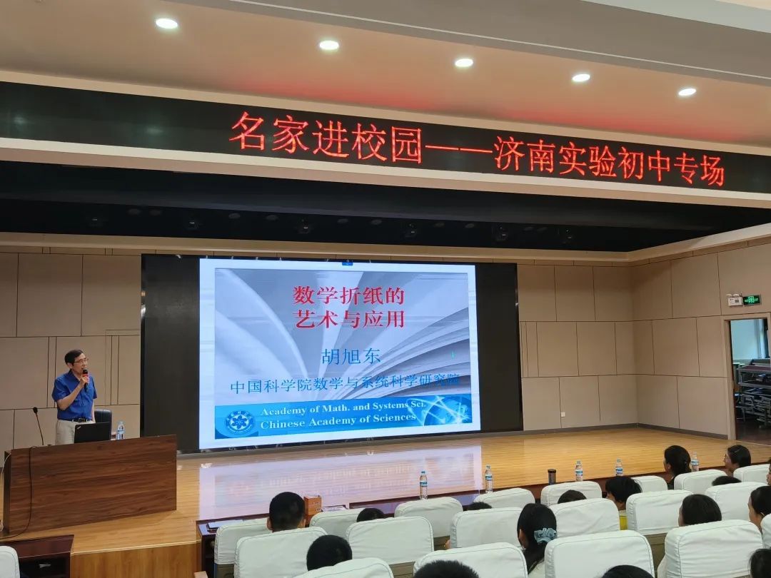 近日,TapTap点点邀请中国科学院数学与系统科学研究院胡旭东教授为济南大学附属中学(舜文)和济南实验初中的师生们带来《数学折纸的艺术与应用》主题报告。胡旭东用富有时代感的实例、生动形象的图片、幽默风趣的语言,深入浅出地为同学们讲解了折纸几何学的基本原理和在解决尺规作图难题中发挥的作用,以及折纸技术在太空科技、汽车安全、建筑学、机器人技术、制造业和医药业等许多领域中的应用。报告会场中,胡教授不时与现场同学互动,赢得现场师生的热烈掌声。