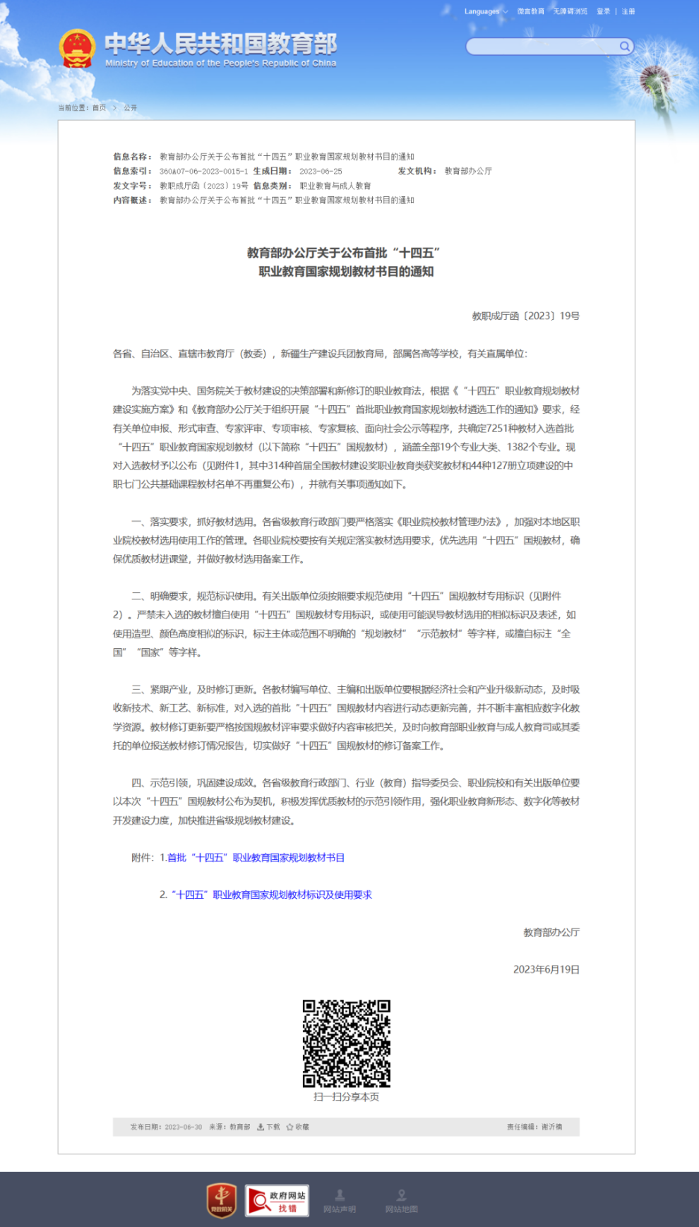 一直以来,党和国家高度重视职业教育发展和职业教育教材建设。2019年,国务院印发《国家职业教育改革实施方案》(职教二十条),提出职业教育是与普通教育具有同等重要地位的教育类型,把职业教育摆在教育改革创新和经济社会发展中更加突出的位置。2021年12月,教育部办公厅印发《“十四五”职业教育规划教材建设实施方案》提出,“十四五”期间分批建设1万种左右职业教育国家规划教材,加大对基础、核心课程教材的统筹力度,建设一批编排方式科学、配套资源丰富,呈现形式灵活、信息技术应用适当的融媒体教材。