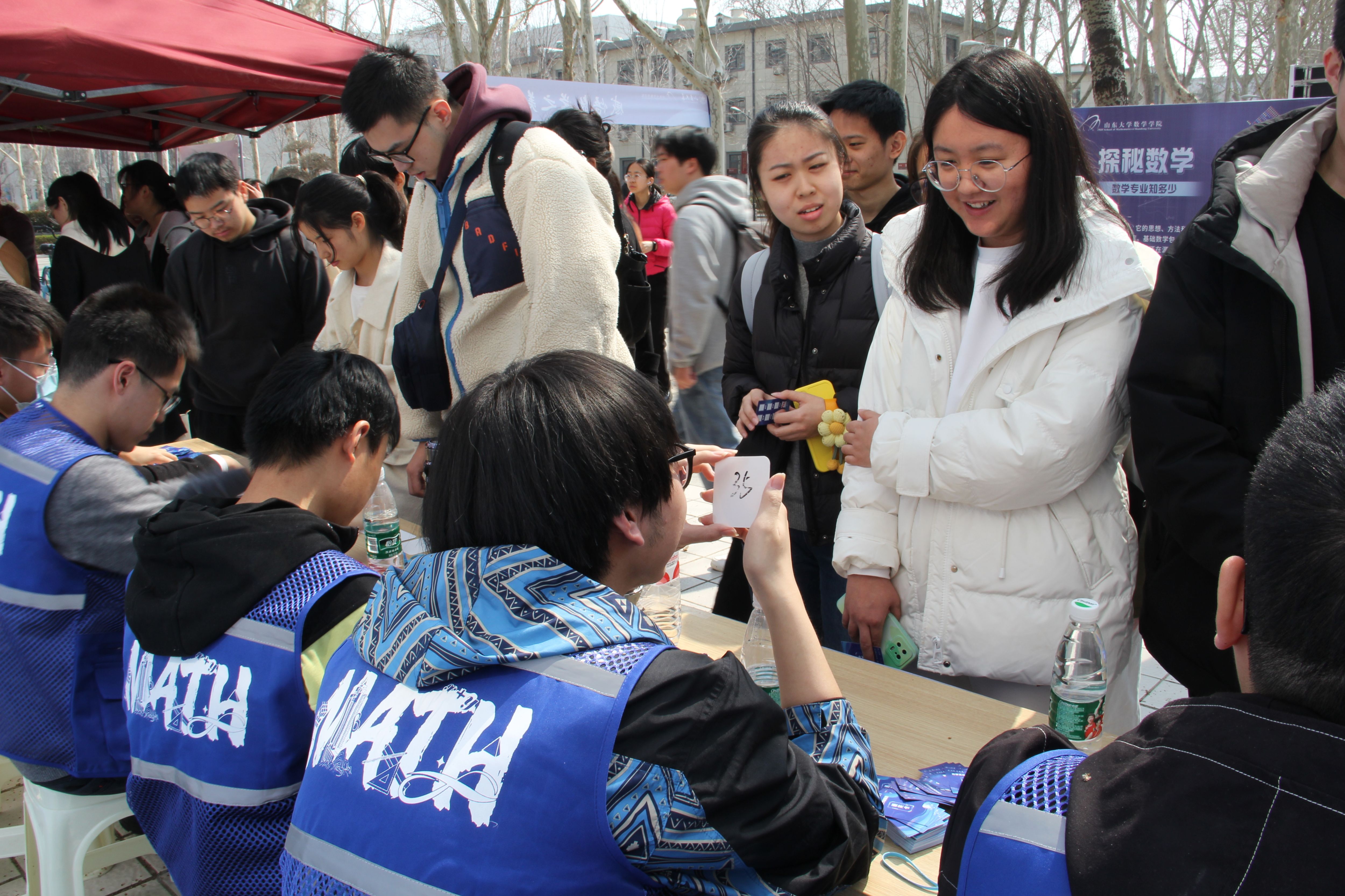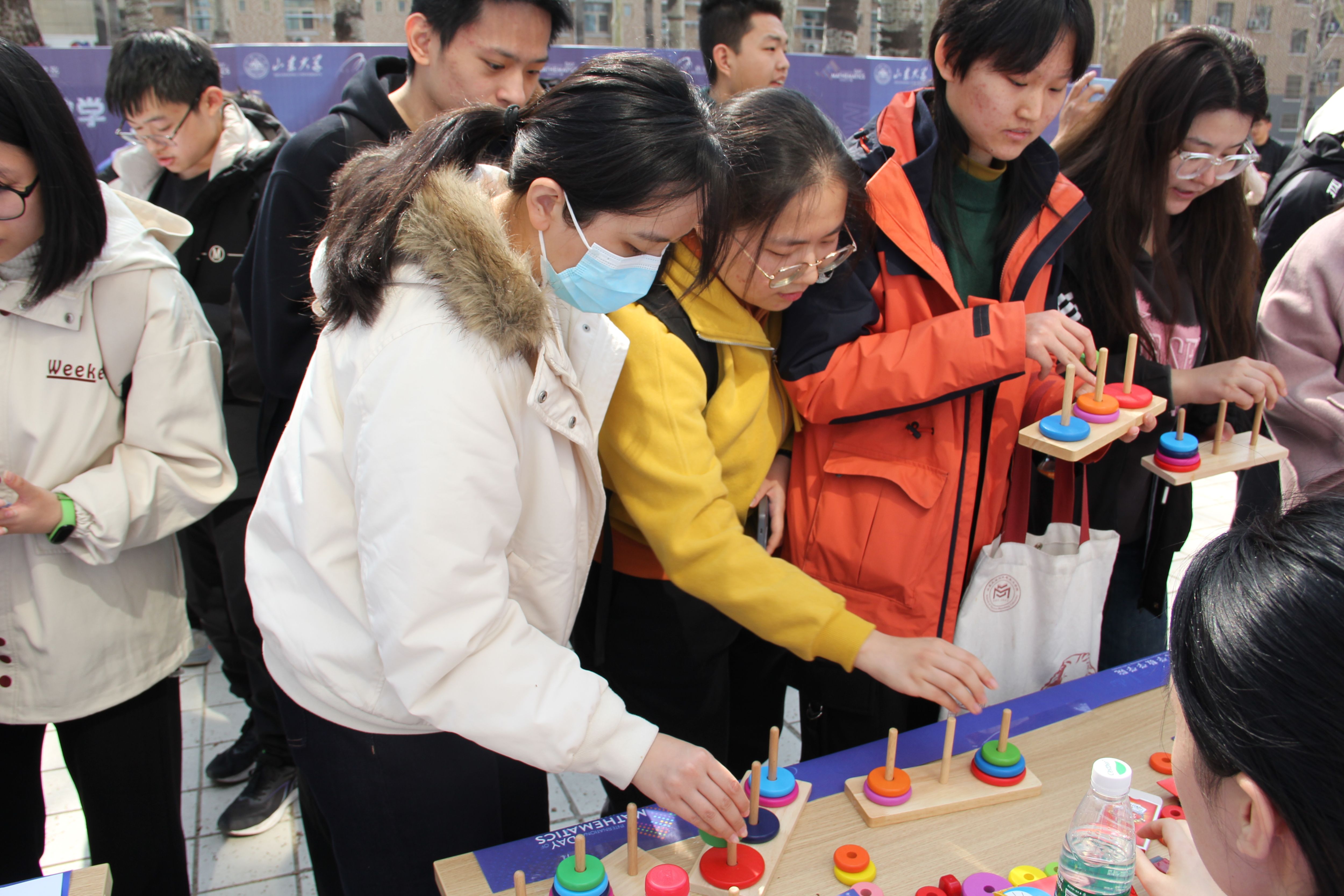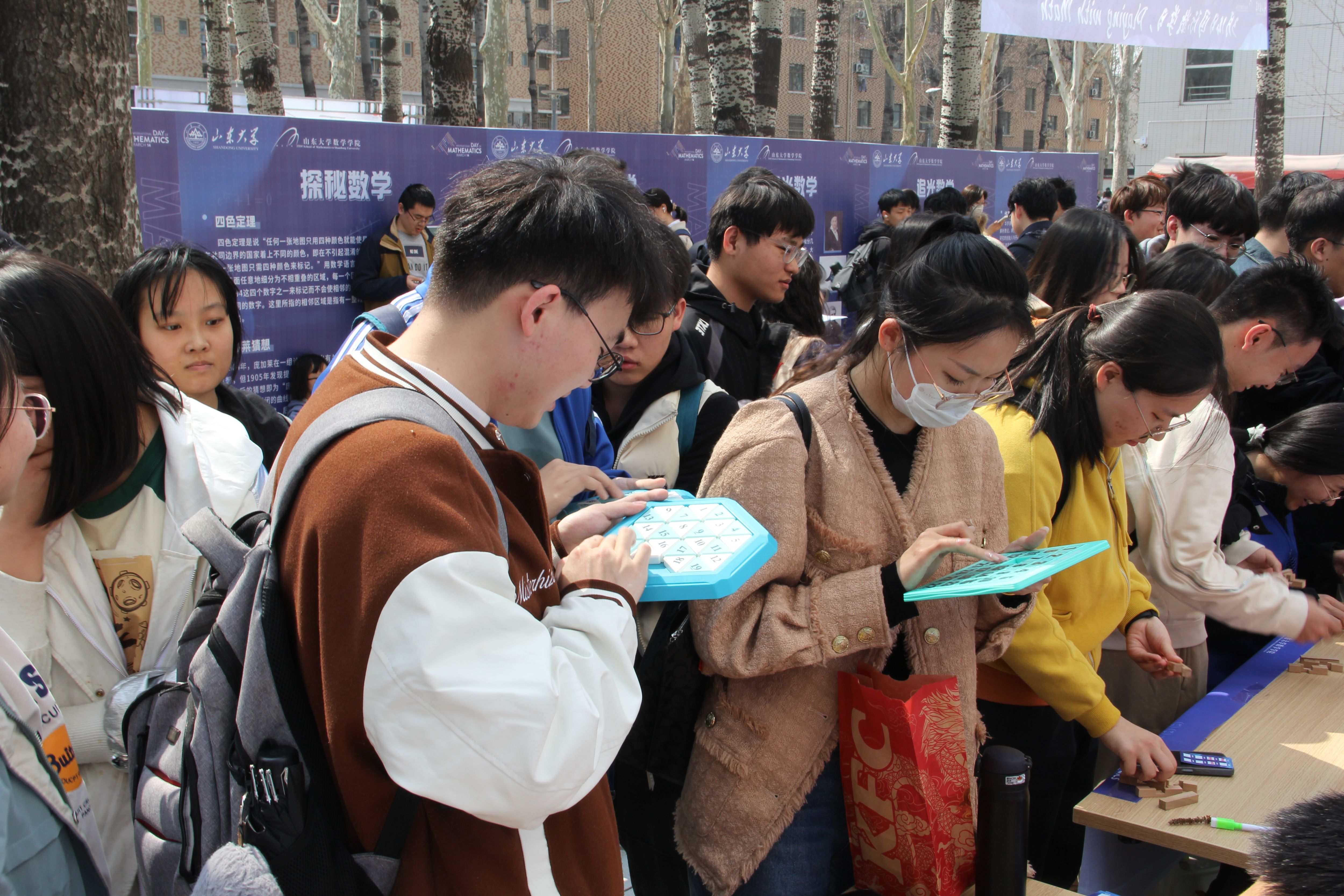 开幕式现场设置了数学游园会和数学文化展。师生们体验鲁班锁、华容道、九连环等趣味游戏,在思考和欢笑中提升数学思维,感受数学魅力;观看数学文化展,探秘著名猜想,领略大家风采,追寻数学之美,思考数通万物。游玩师生络绎不绝,现场气氛热烈,欢乐π送不停。